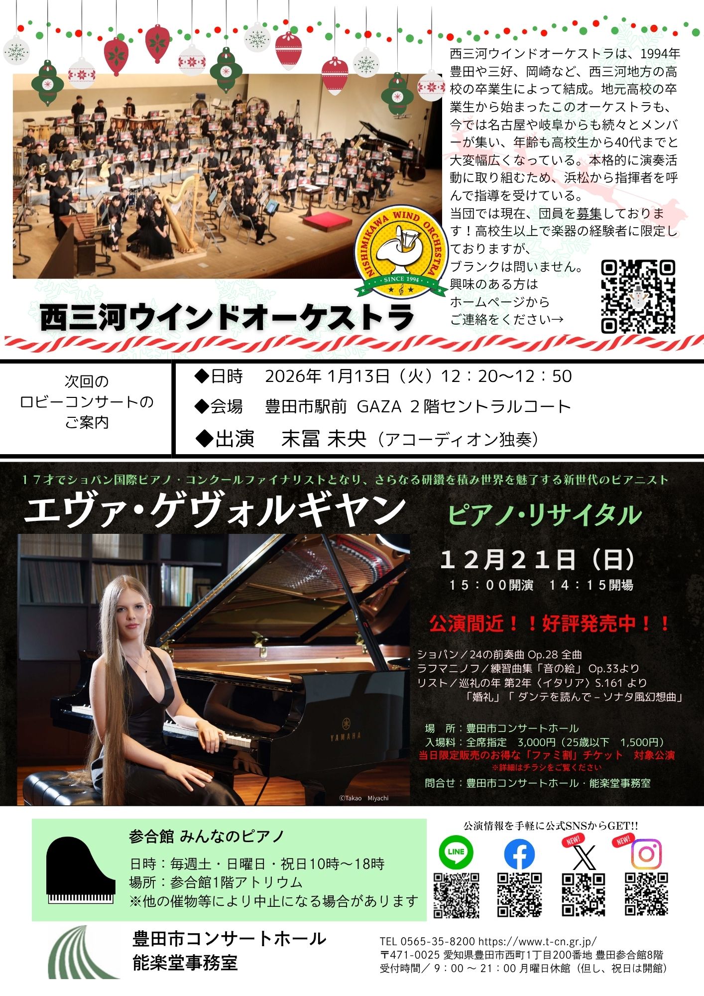 12月18日(木)12:20~12:50 GAZA2階セントラルコートにてコンサートを開催します。