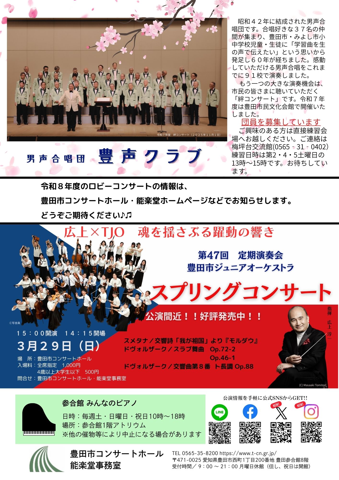 令和8年2月20日(金)12:20~12:50 豊田市役所 南庁舎2階 市民ロビーにてコンサートを開催します。